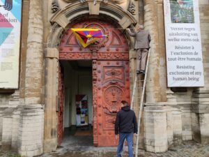 🏳️ Throughout the entire exhibition month, the Tibetan flag will be raised on the façade of House of Compassion, in solidarity with the Tibetan people. Photo : Geneviève Frère